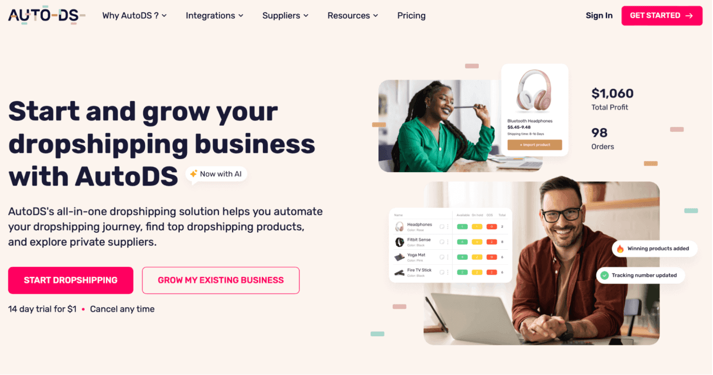 When you first open AutoDS, you’re greeted with a marketplace of the hottest products in popular categories like home improvement, pets, fitness, and fashion.