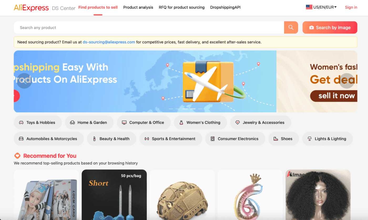 If you want to find products through the AliExpress, consider using its DS Center. You can use keywords to look for products or do an image search. To see more details on a specific product, copy the AliExpress product link and paste it into the Product Analysis tab.