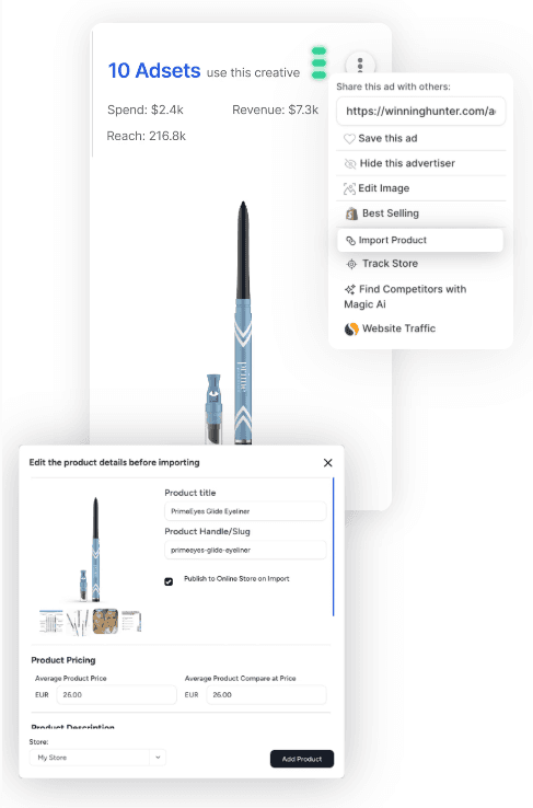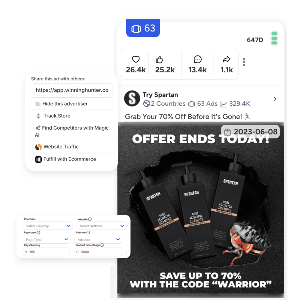 By using WinningHunter you do product research and save so much money because you test quality products, get more insights about competitors & learn from them.