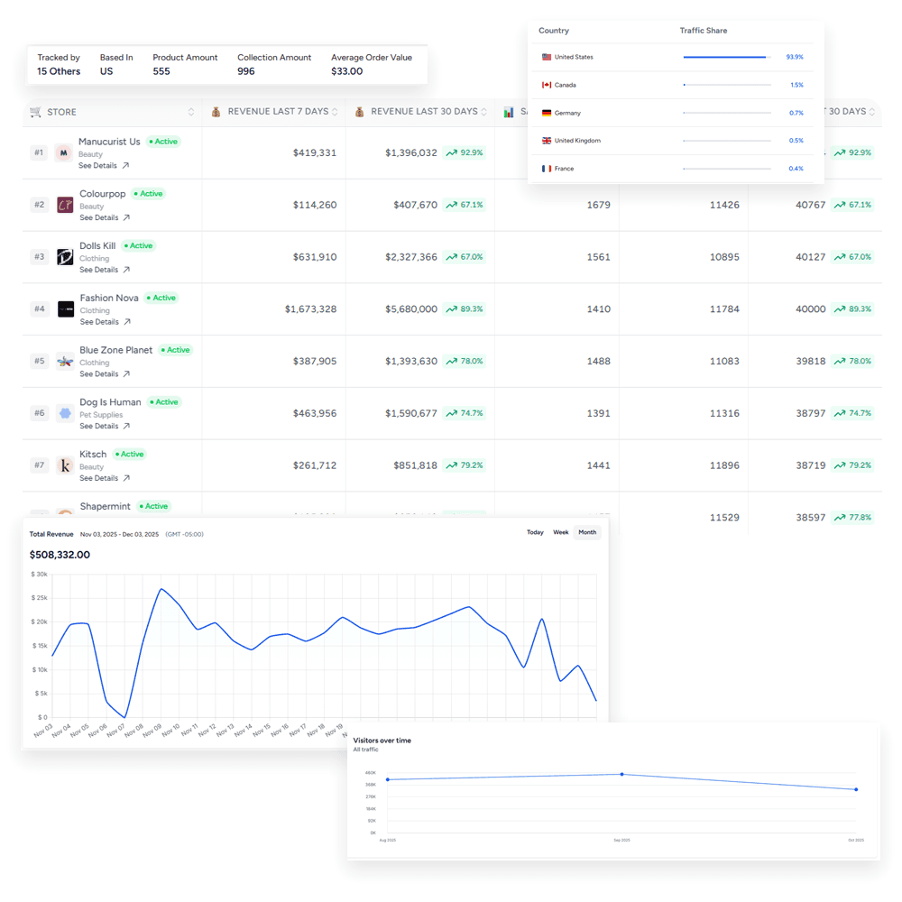 Make winning ads. See the adspend and revenue of ads. EVERY Tiktok & Facebook ad in the world at your hands. See any stores’ revenue with our accurate sales tracker. Stop guessing, test proven concepts.
