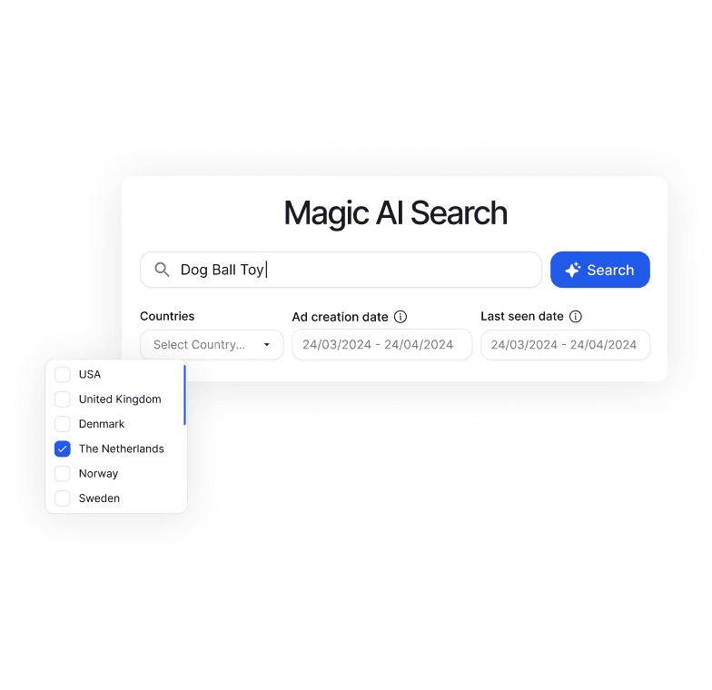 Start by using our Ad Library to find Ads internationally. Use our adspend filter to find winning ads, focusing on what is certain to work.