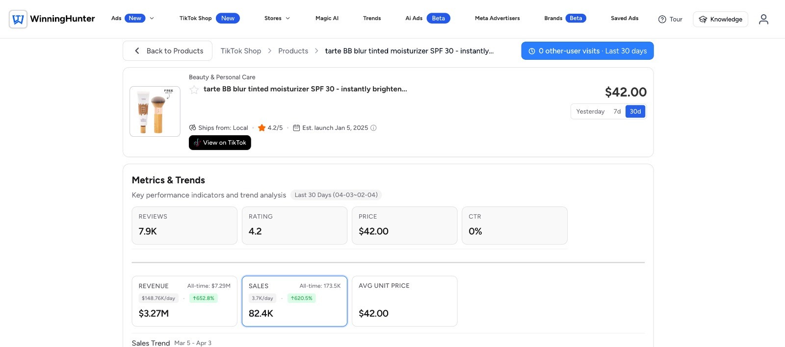 Trending products on TikTok are driven by a flywheel of creator content, algorithmic amplification, and impulse purchasing — a cycle that moves fast. Without real-time TikTok shop data, sellers react to trends after they've already peaked. WinningHunter gives you the upstream signal: which products are getting creator attention, which shops are scaling spend, and which trending TikTok products have sustainable demand vs. a one-day spike.